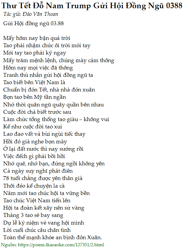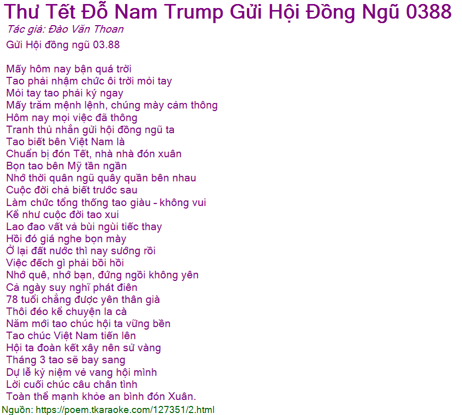 thư tết đỗ nam trump gửi hội đồng ngũ 0388