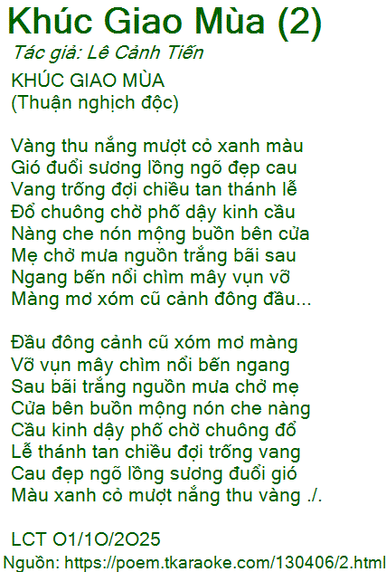 Màu xanh cỏ mượt nắng thu vàng ./.