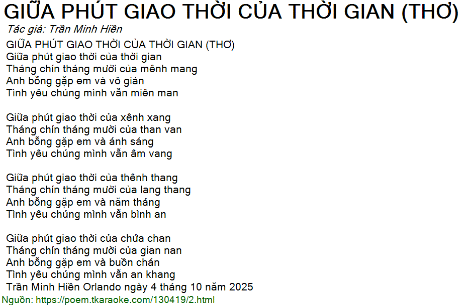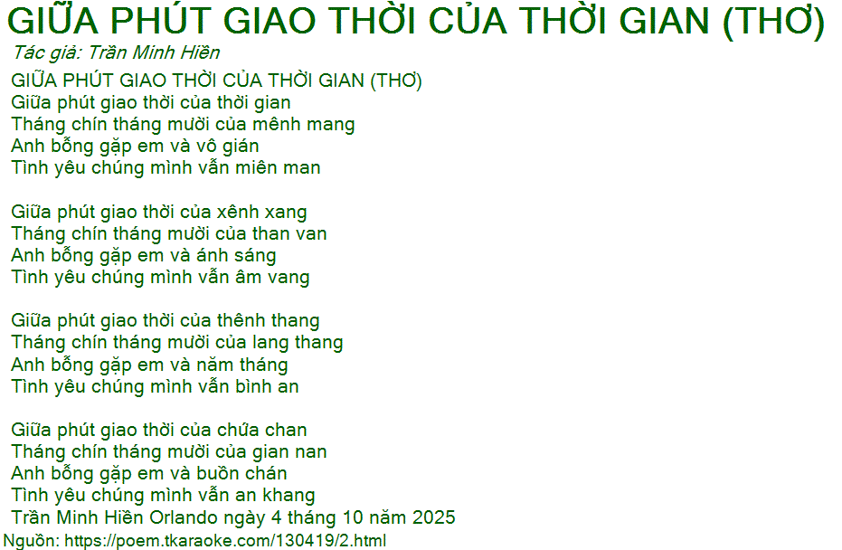 GIỮA PHÚT GIAO THỜI CỦA THỜI GIAN (THƠ)