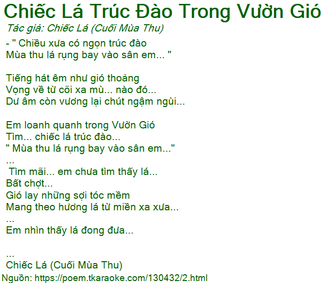 chiếc lá trúc đào trong vườn gió