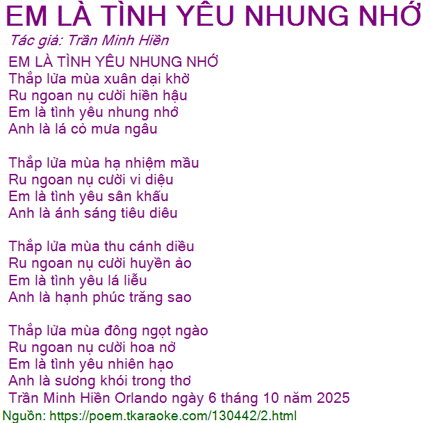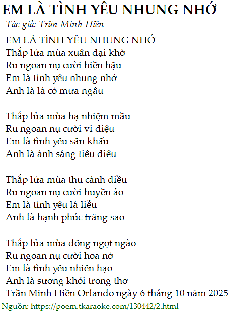 EM LÀ TÌNH YÊU NHUNG NHỚ