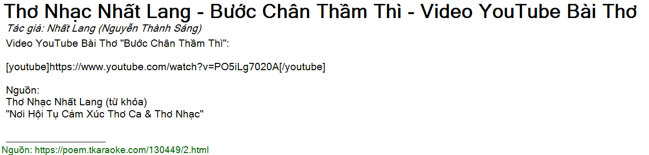 Video YouTube Bai Tho "Buoc Chan Tham Thi":