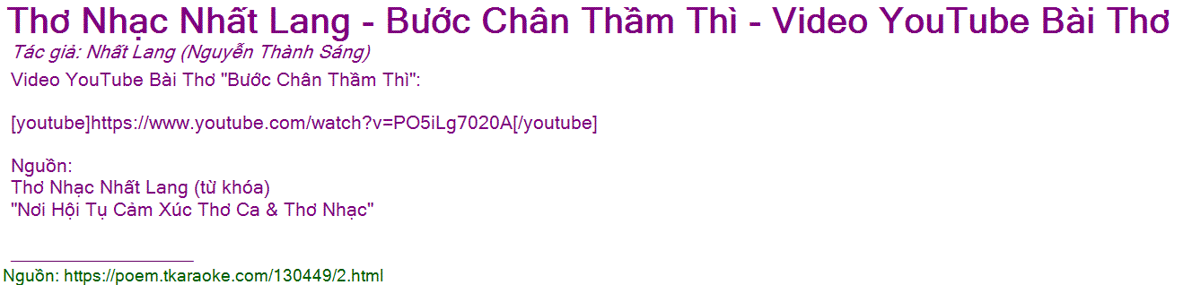 Thơ Nhạc Nhất Lang - Bước Chân Thầm Thì - Video YouTube Bài Thơ