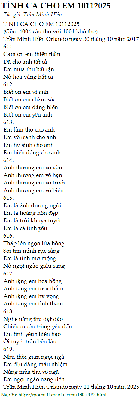(Gồm 4004 câu thơ với 1001 khổ thơ)
