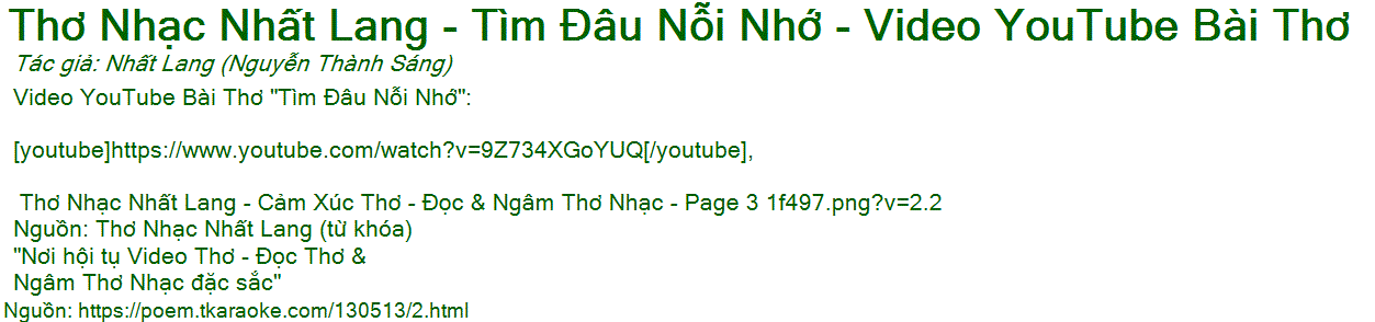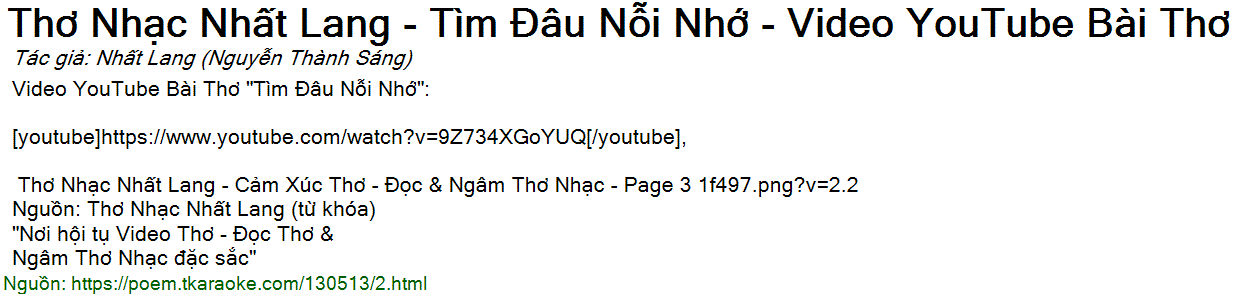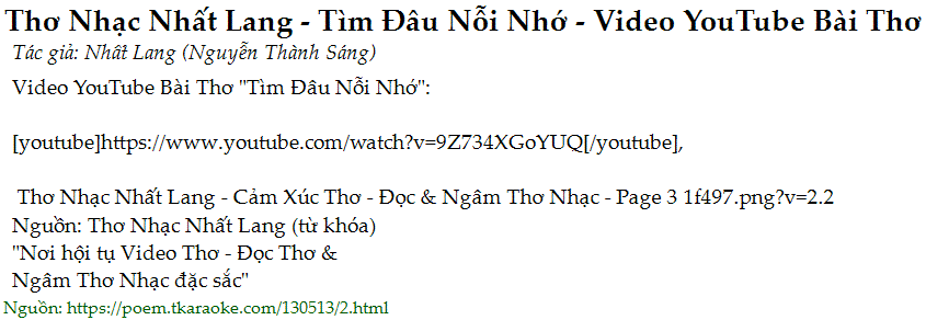 thơ nhạc nhất lang - tìm đâu nỗi nhớ - video youtube bài thơ