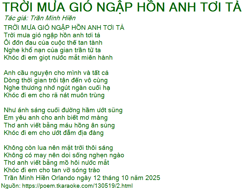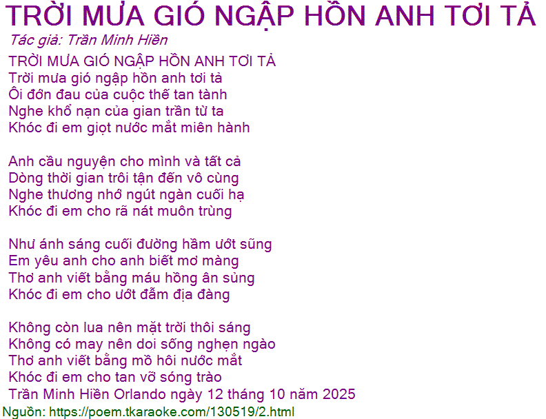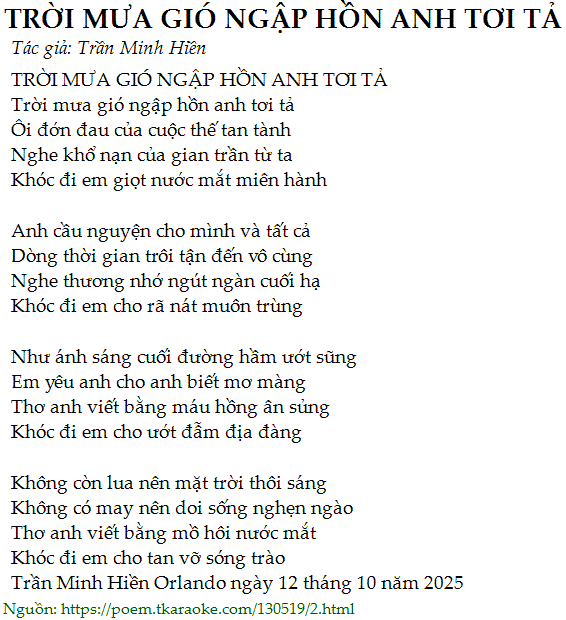 TRỜI MƯA GIÓ NGẬP HỒN ANH TƠI TẢ