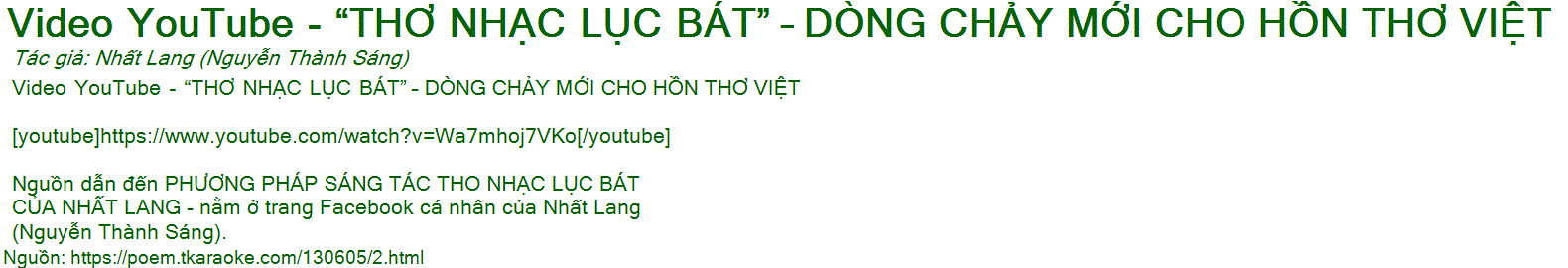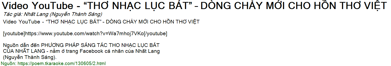 Video YouTube - “THƠ NHẠC LỤC BÁT” – DÒNG CHẢY MỚI CHO HỒN THƠ VIỆT