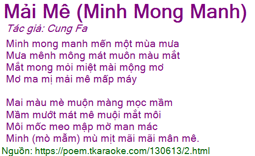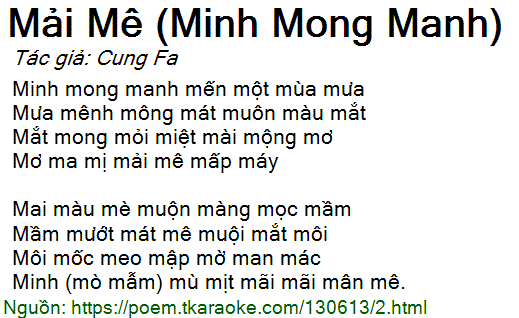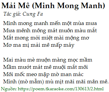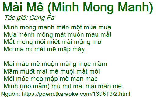 Minh (mò mẫm) mù mịt mãi mãi mân mê.