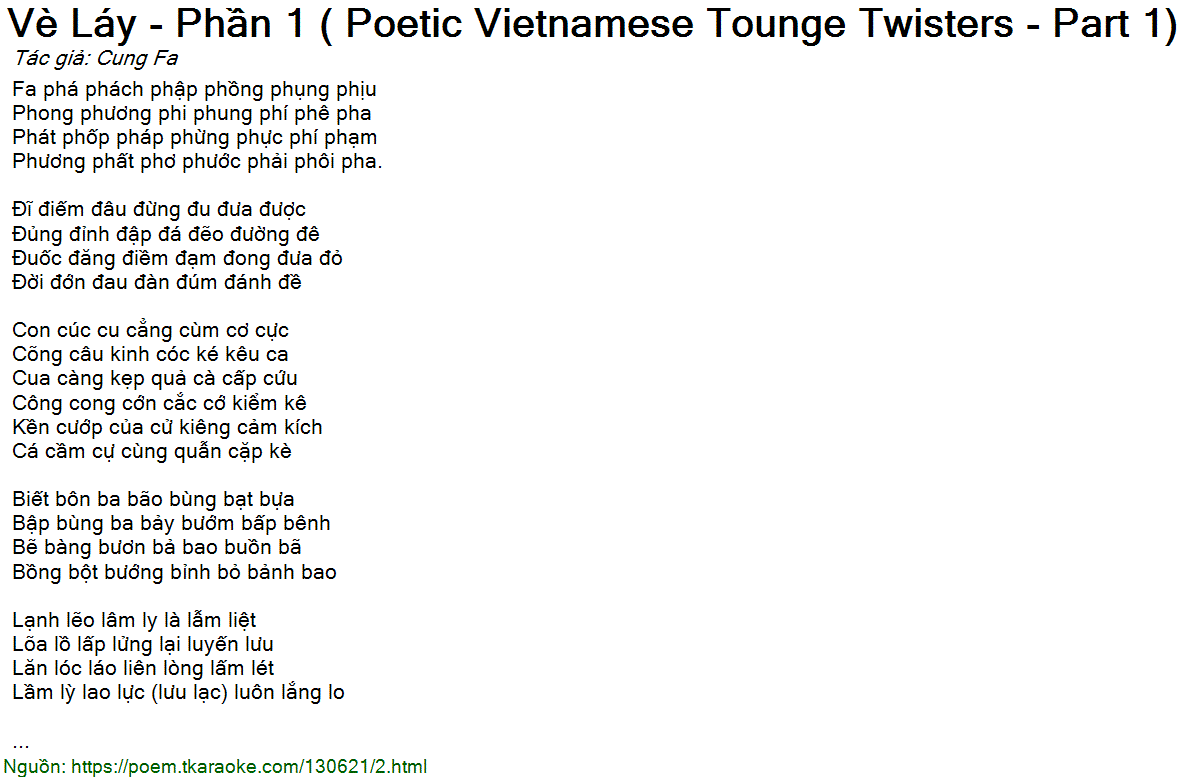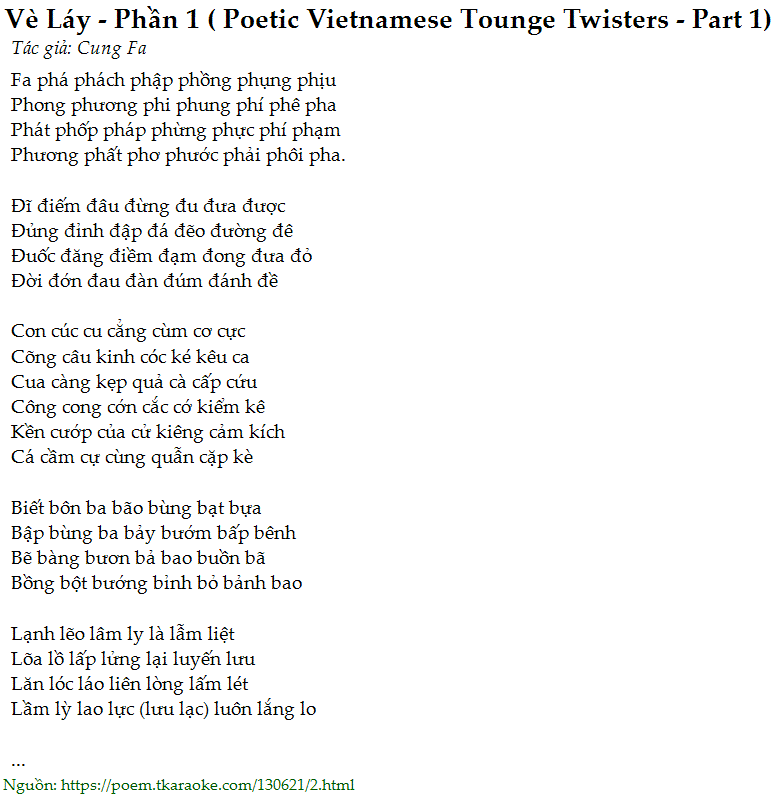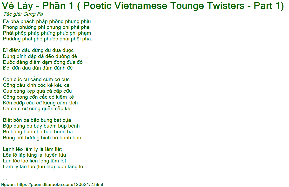 vè láy - phần 1 ( poetic vietnamese tounge twisters - part 1)