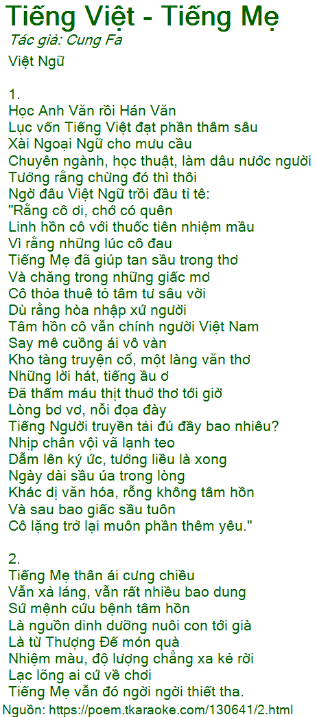 Tiếng Mẹ vẫn đó ngời ngời thiết tha.
