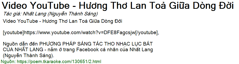 Video YouTube - THƠ NHẠC LỤC BÁT - BẢN NHẠC TỰ THÂN CỦA TÂM HỒN