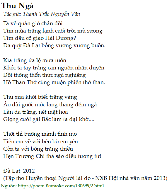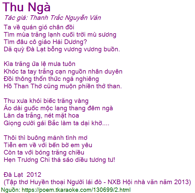 (Tập thơ Huyền thoại Người lái đò - NXB Hội nhà văn năm 2013)