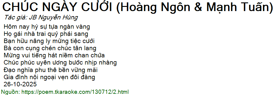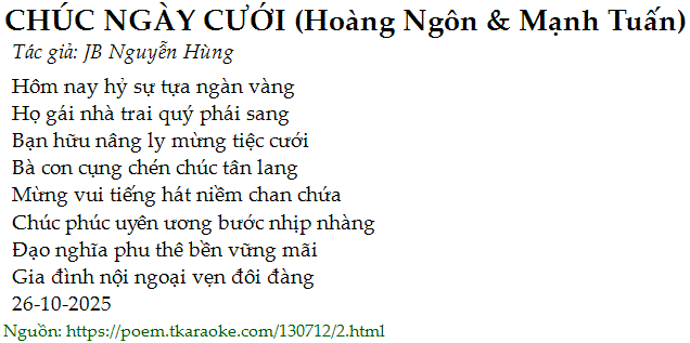 CHÚC NGÀY CƯỚI (Hoàng Ngôn & Mạnh Tuấn)