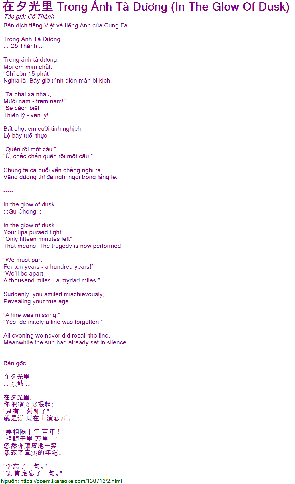 在夕光里 trong ánh tà dương (in the glow of dusk)