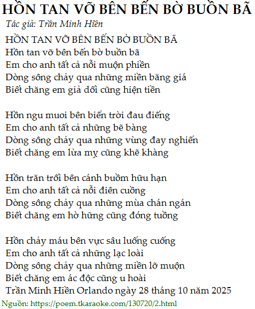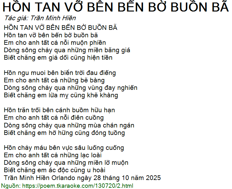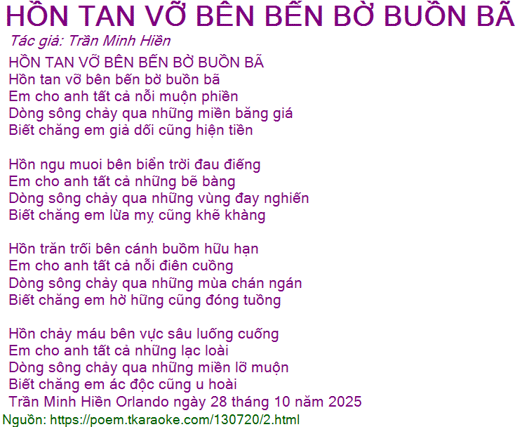 HỒN TAN VỠ BÊN BẾN BỜ BUỒN BÃ