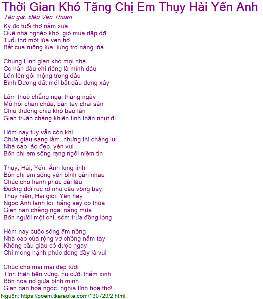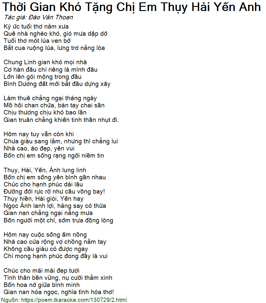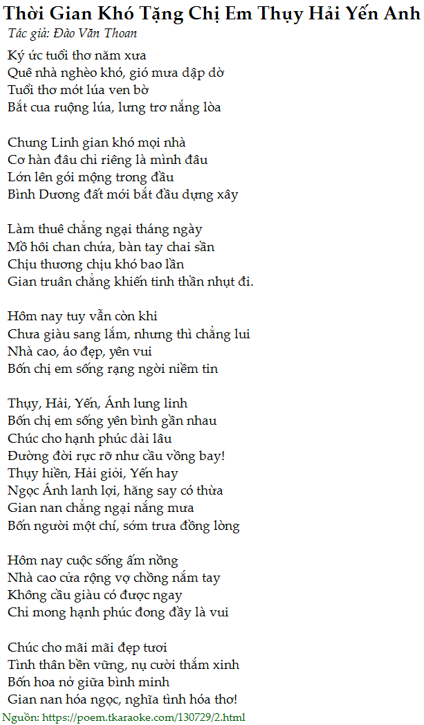 thời gian khó tặng chị em thụy hải yến anh