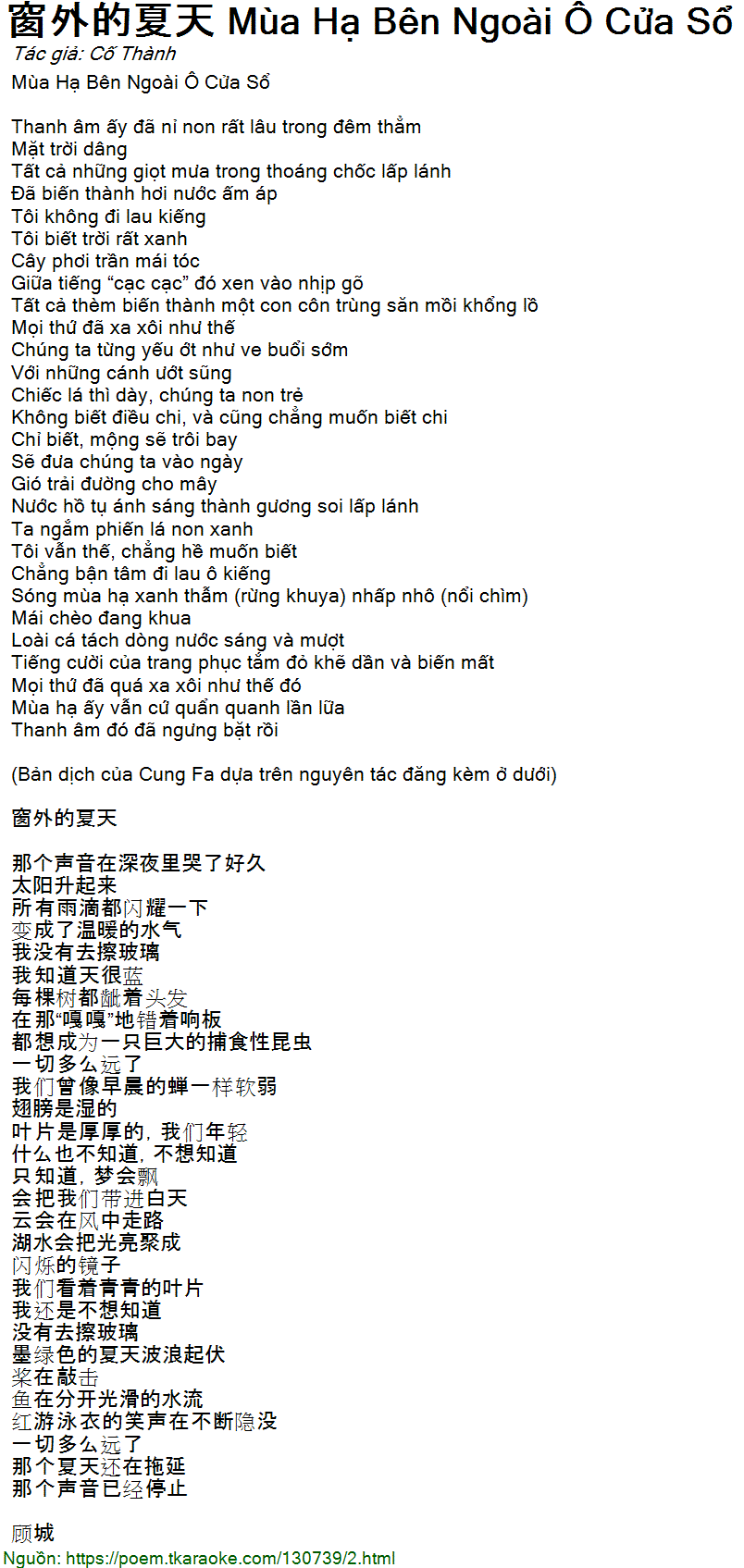 (Bản dịch của Cung Fa dựa trên nguyên tác đăng kèm ở dưới)