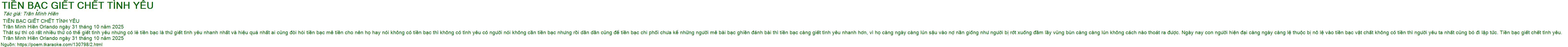 TIỀN BẠC GIẾT CHẾT TÌNH YÊU