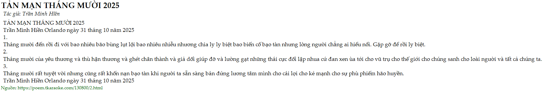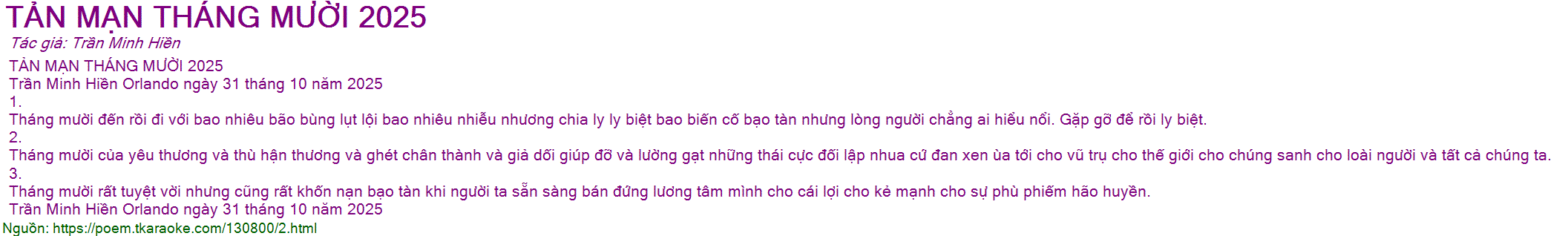 Tháng mười của yêu thương và thù hận thương và ghét chân thành và giả dối giúp đỡ và lường gạt những thái cực đối lập nhua cứ đan xen ùa tới cho vũ trụ cho thế giới cho chúng sanh cho loài người và tất cả chúng ta.