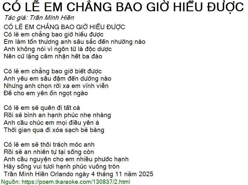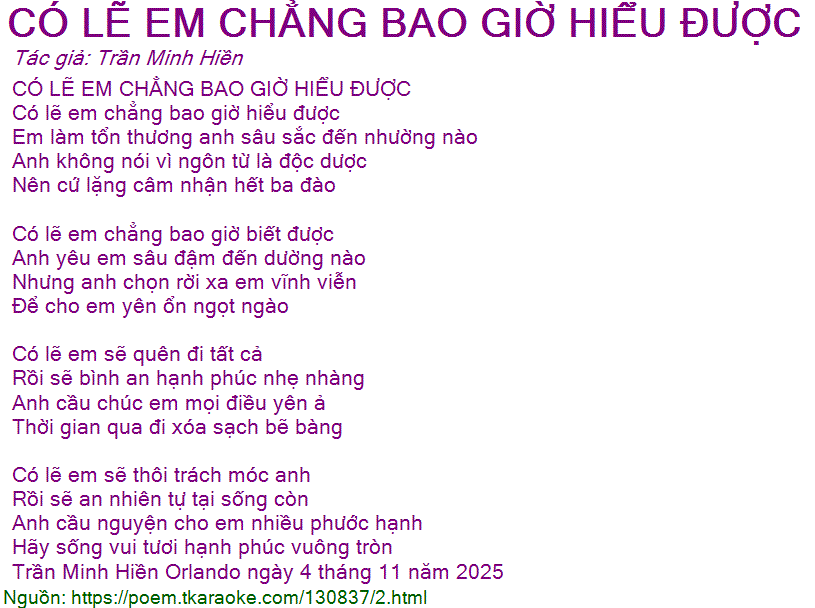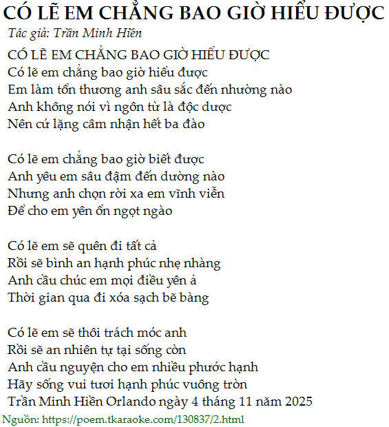 CÓ LẼ EM CHẲNG BAO GIỜ HIỂU ĐƯỢC