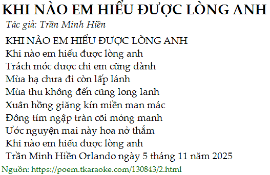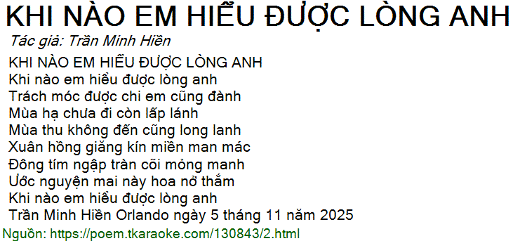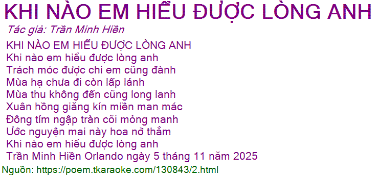 KHI NÀO EM HIỂU ĐƯỢC LÒNG ANH