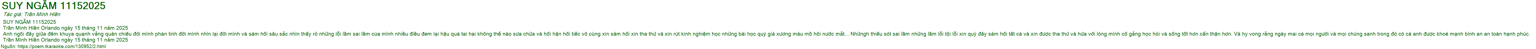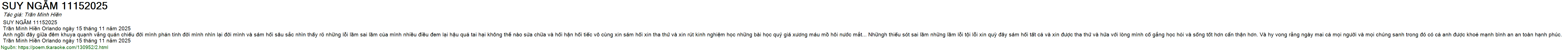 Anh ngồi đây giữa đêm khuya quạnh vắng quán chiếu đời mình phản tỉnh đời mình nhìn lại đời mình và sám hối sâu sắc nhìn thấy rõ những lỗi lầm sai lầm của mình nhiều điều đem lại hậu quả tai hại không thể nào sửa chữa và hối hận hối tiếc vô cùng xin sám hối xin tha thứ và xin rút kinh nghiệm học những bài học quý giá xương máu mồ hôi nước mắt... Nhữngh thiếu sót sai lầm những lầm lỗi tội lỗi xin quỳ đây sám hối tất cả và xin được tha thứ và hứa với lòng mình cố gắng học hỏi và sống tốt hơn cẩn thận hơn. Và hy vong rằng ngày mai cả mọi người và mọi chúng sanh trong đó có cả anh được khoẻ mạnh bình an an toàn hạnh phúc.