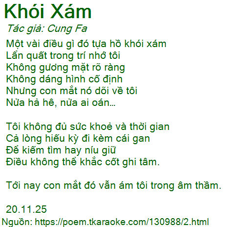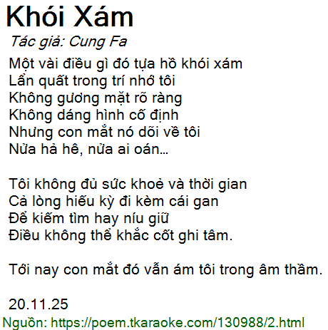 Tới nay con mắt đó vẫn ám tôi trong âm thầm.