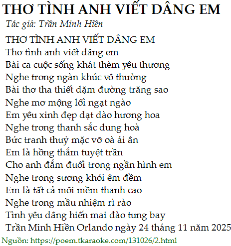 THƠ TÌNH ANH VIẾT DÂNG EM
