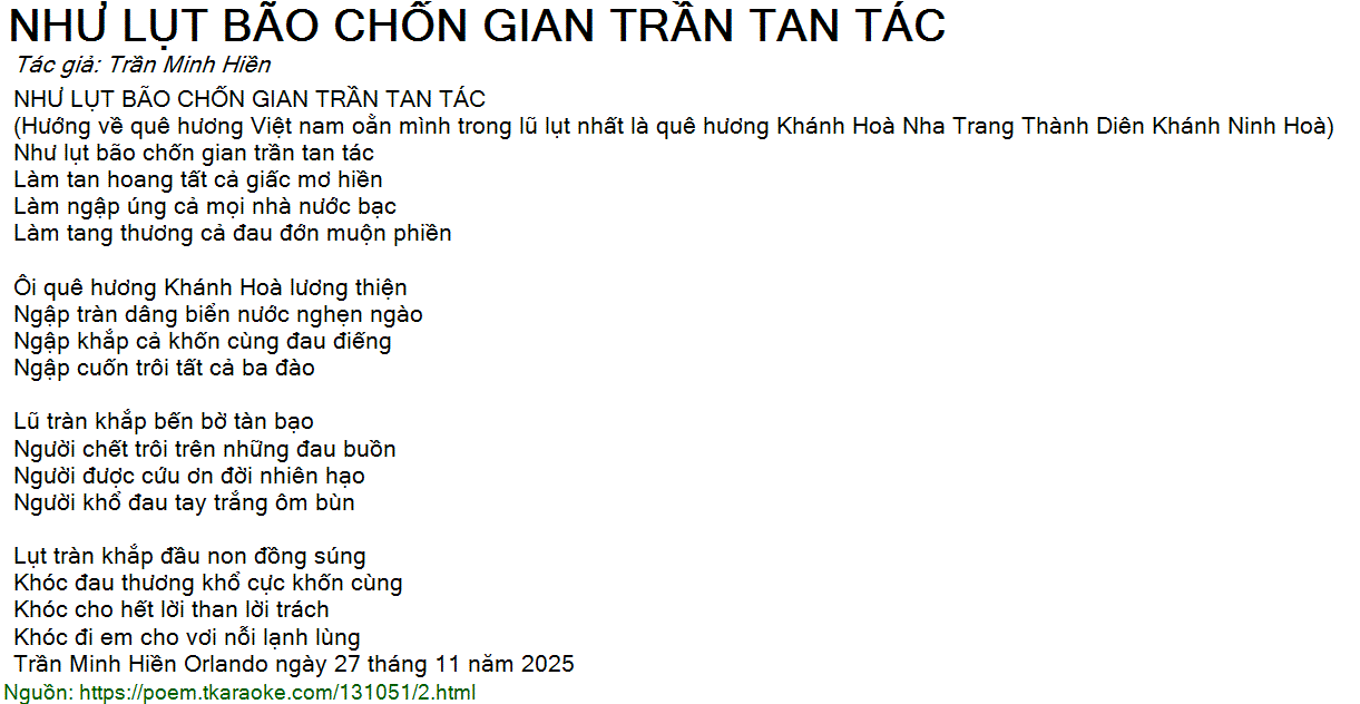 (Hướng về quê hương Việt nam oằn mình trong lũ lụt nhất là quê hương Khánh Hoà Nha Trang Thành Diên Khánh Ninh Hoà)