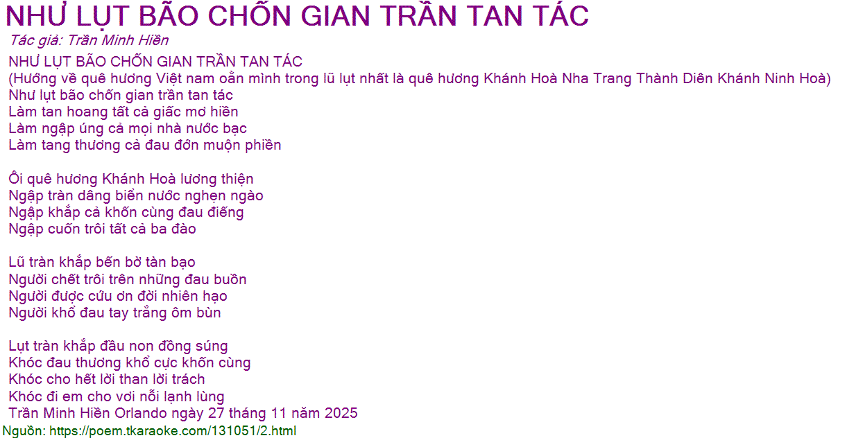 NHƯ LỤT BÃO CHỐN GIAN TRẦN TAN TÁC