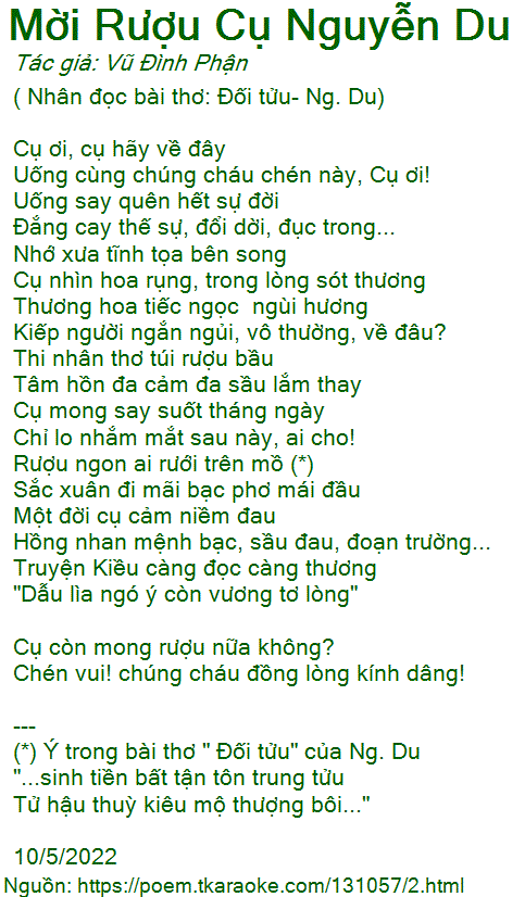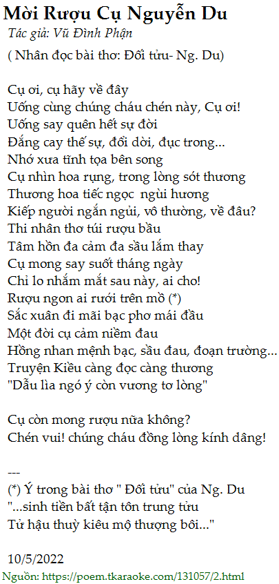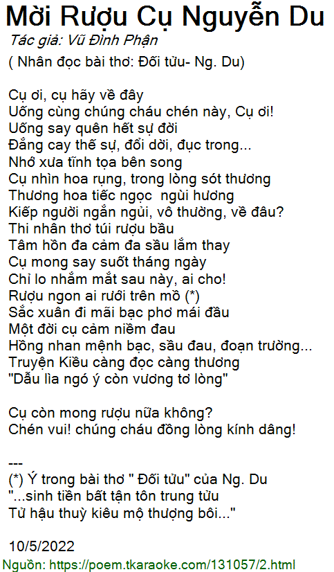(*) Ý trong bài thơ " Đối tửu" của Ng. Du