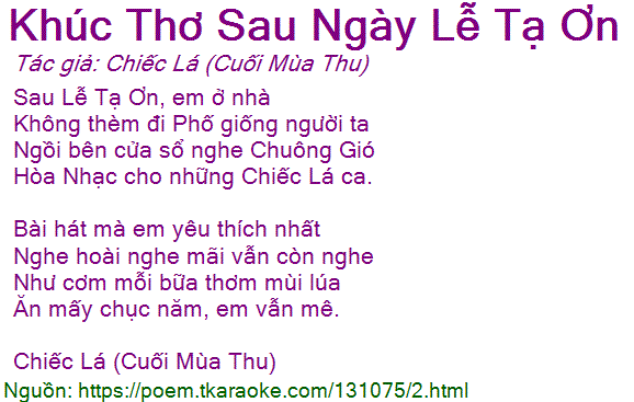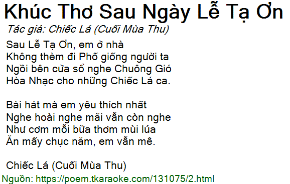 Khúc Thơ Sau Ngày Lễ Tạ Ơn