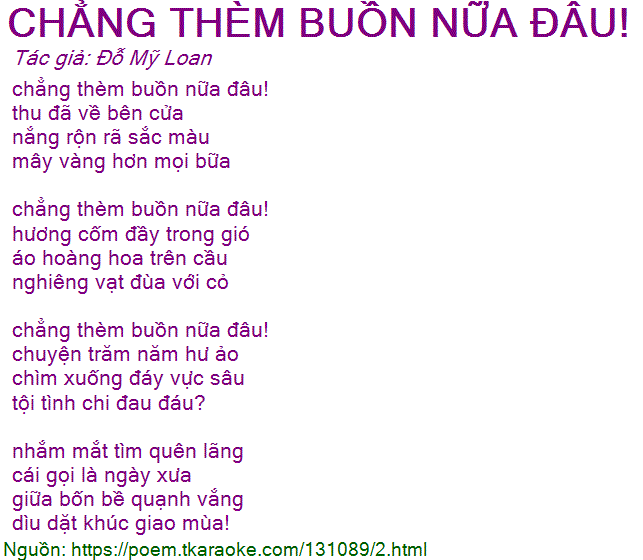 CHẲNG THÈM BUỒN NỮA ĐÂU!