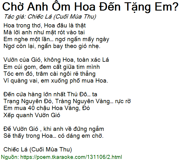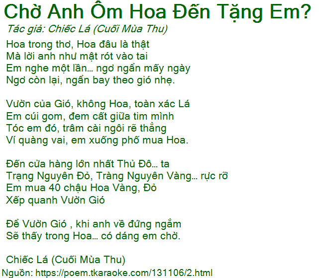 chờ anh ôm hoa đến tặng em?