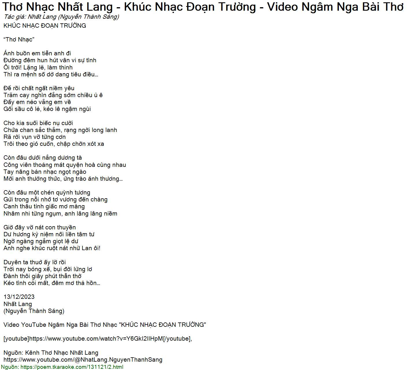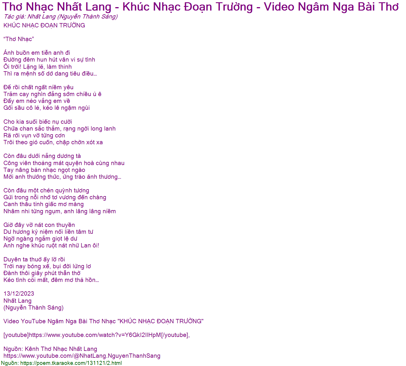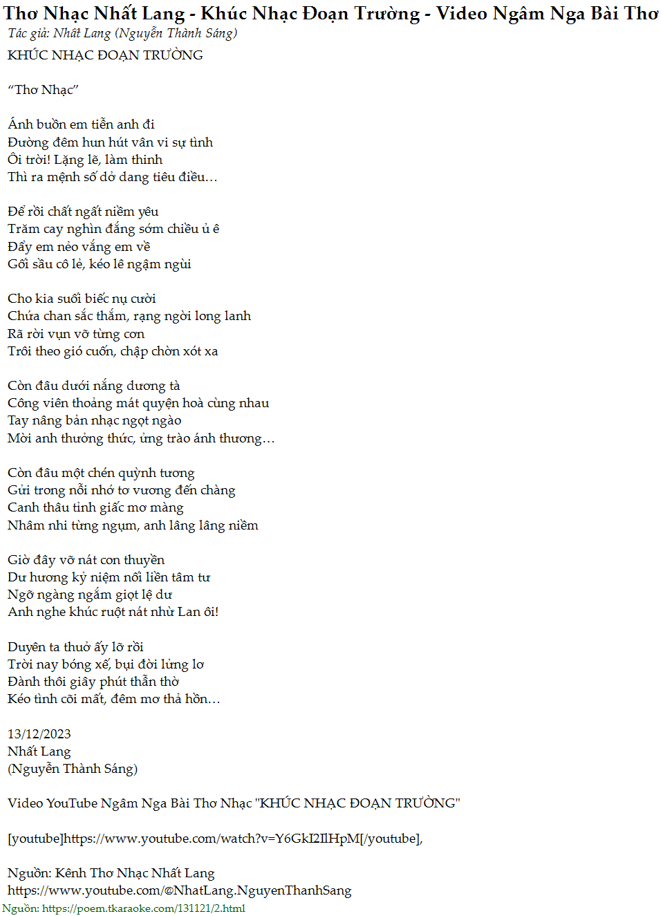 Video YouTube Ngâm Nga Bài Thơ Nhạc "KHÚC NHẠC ĐOẠN TRƯỜNG"