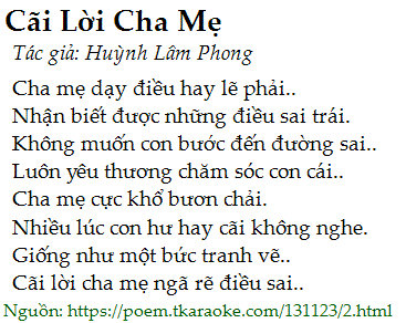 Cãi lời cha mẹ ngã rẽ điều sai..