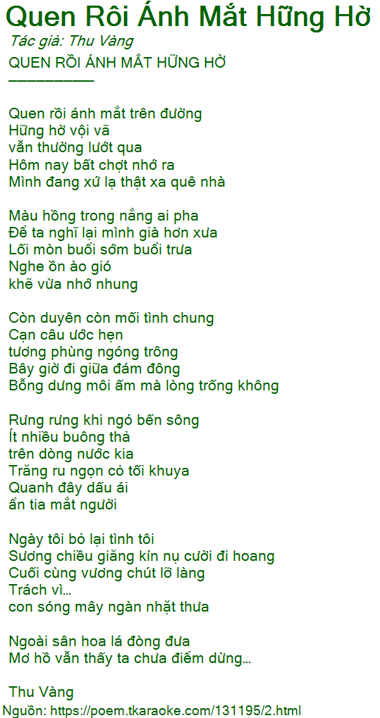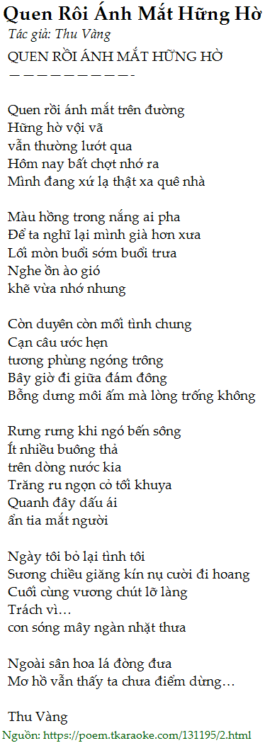 QUEN RỒI ÁNH MẮT HỮNG HỜ