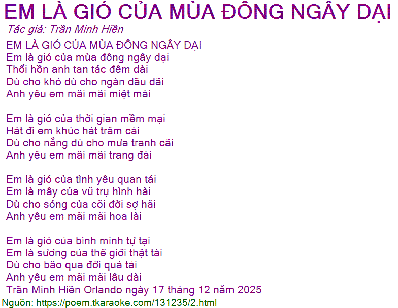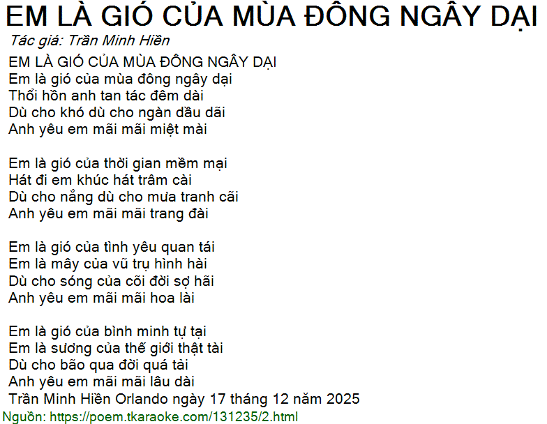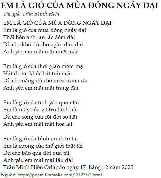 EM LÀ GIÓ CỦA MÙA ĐÔNG NGÂY DẠI