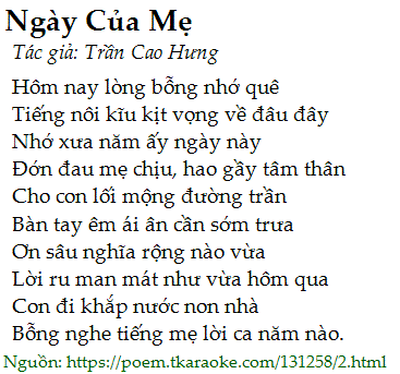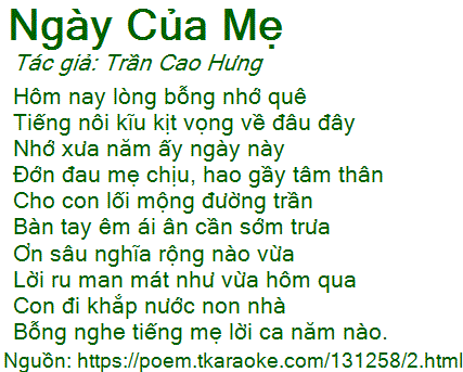 Bỗng nghe tiếng mẹ lời ca năm nào.