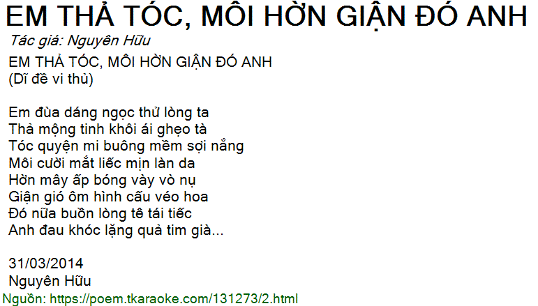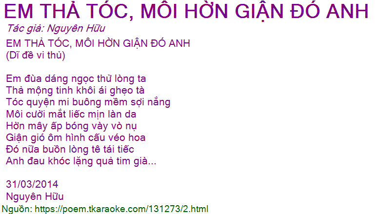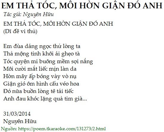 EM THẢ TÓC, MÔI HỜN GIẬN ĐÓ ANH