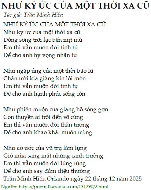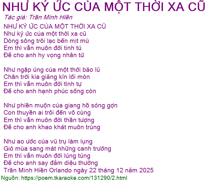 NHƯ KÝ ỨC CỦA MỘT THỜI XA CŨ