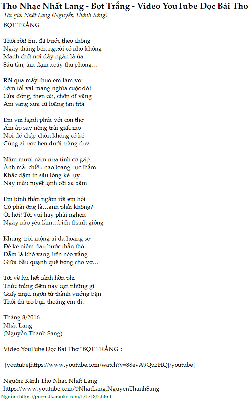 thơ nhạc nhất lang - bọt trắng - video youtube đọc bài thơ