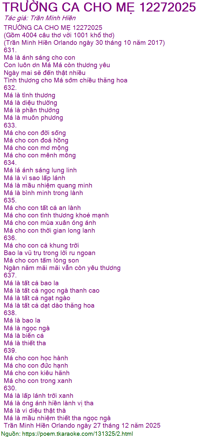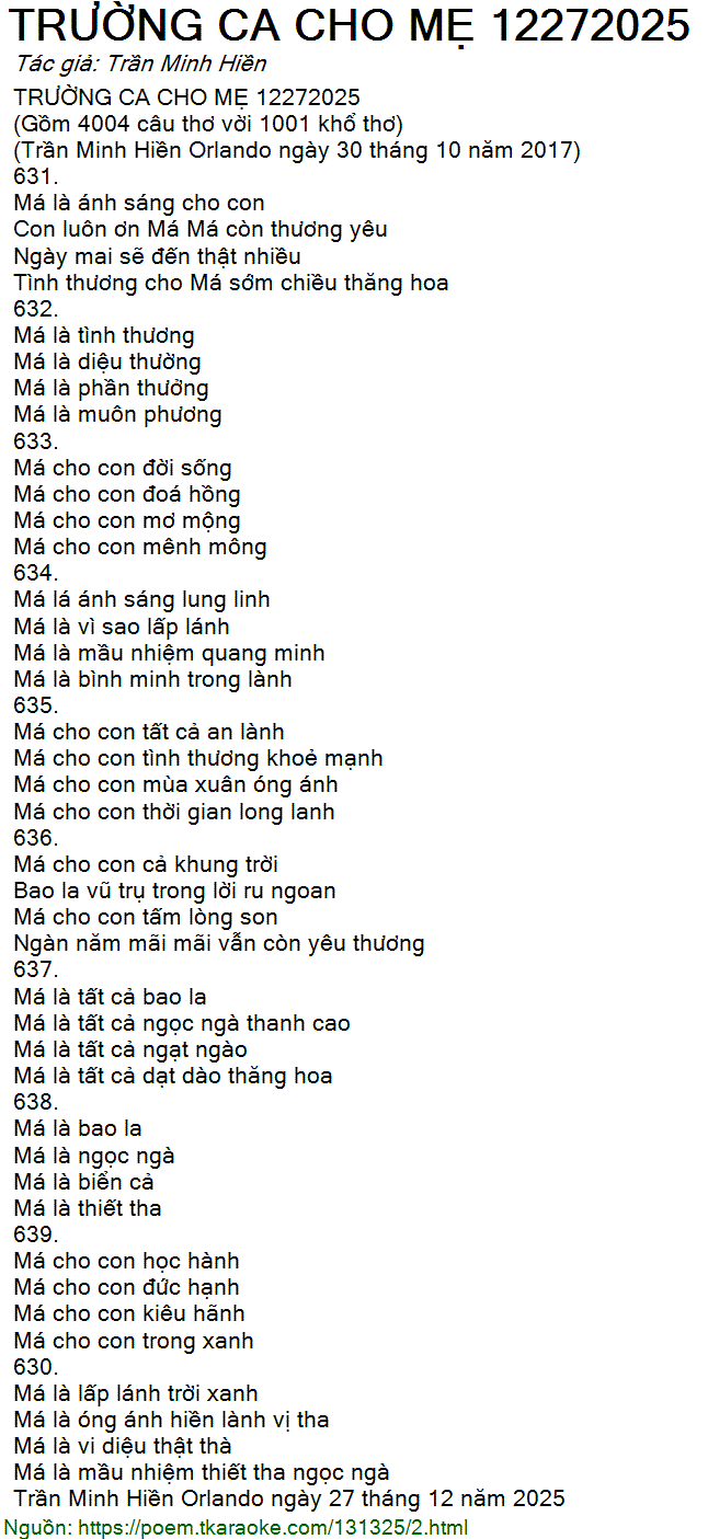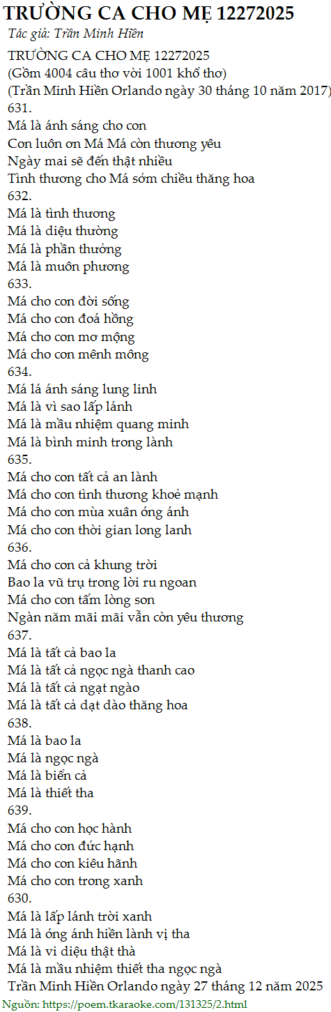 trường ca cho mẹ 12272025