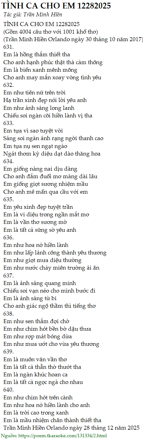 (Gồm 4004 câu thơ với 1001 khổ thơ)