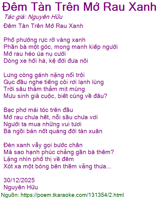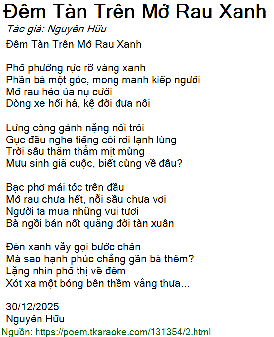 Đêm Tàn Trên Mớ Rau Xanh