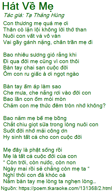 Ngày mai rồi sẽ chẳng còn mẹ ta “