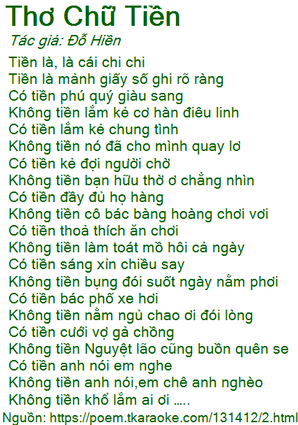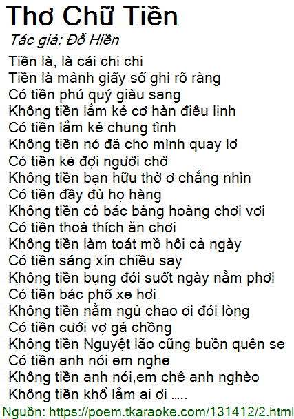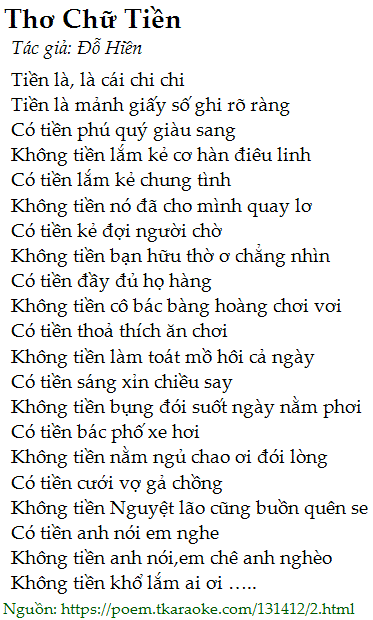 thơ chữ tiền