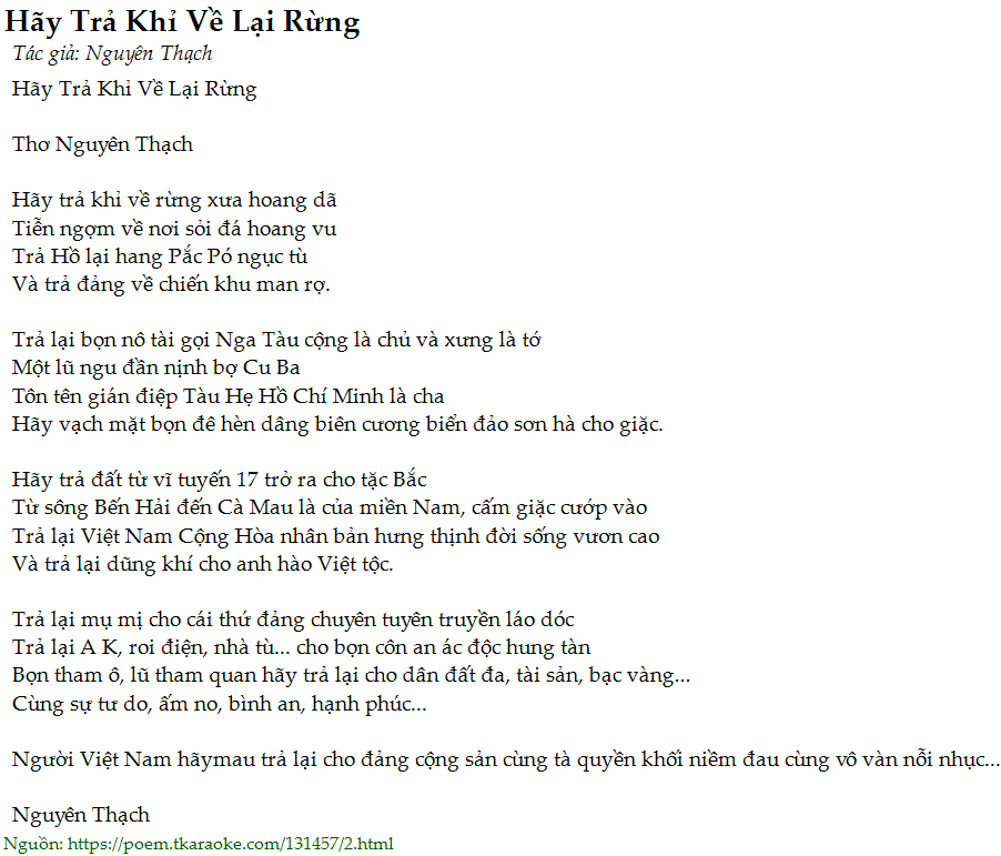 Nguoi Viet Nam haymau tra lai cho dang cong san cung ta quyen khoi niem dau cung vo van noi nhuc...