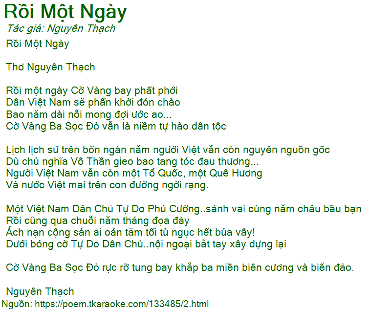 Người Việt Nam vẫn còn một Tổ Quốc, một Quê Hương