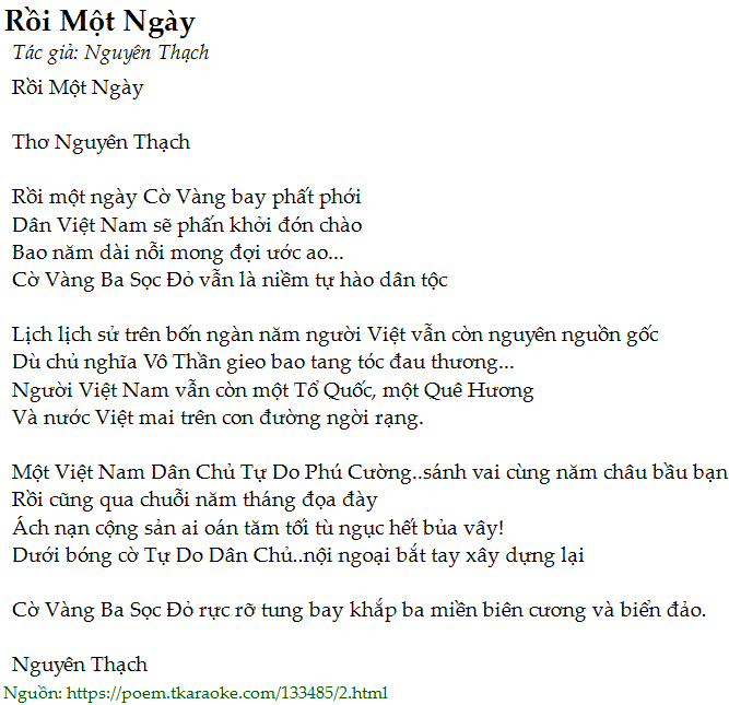 Một Việt Nam Dân Chủ Tự Do Phú Cường..sánh vai cùng năm châu bầu bạn